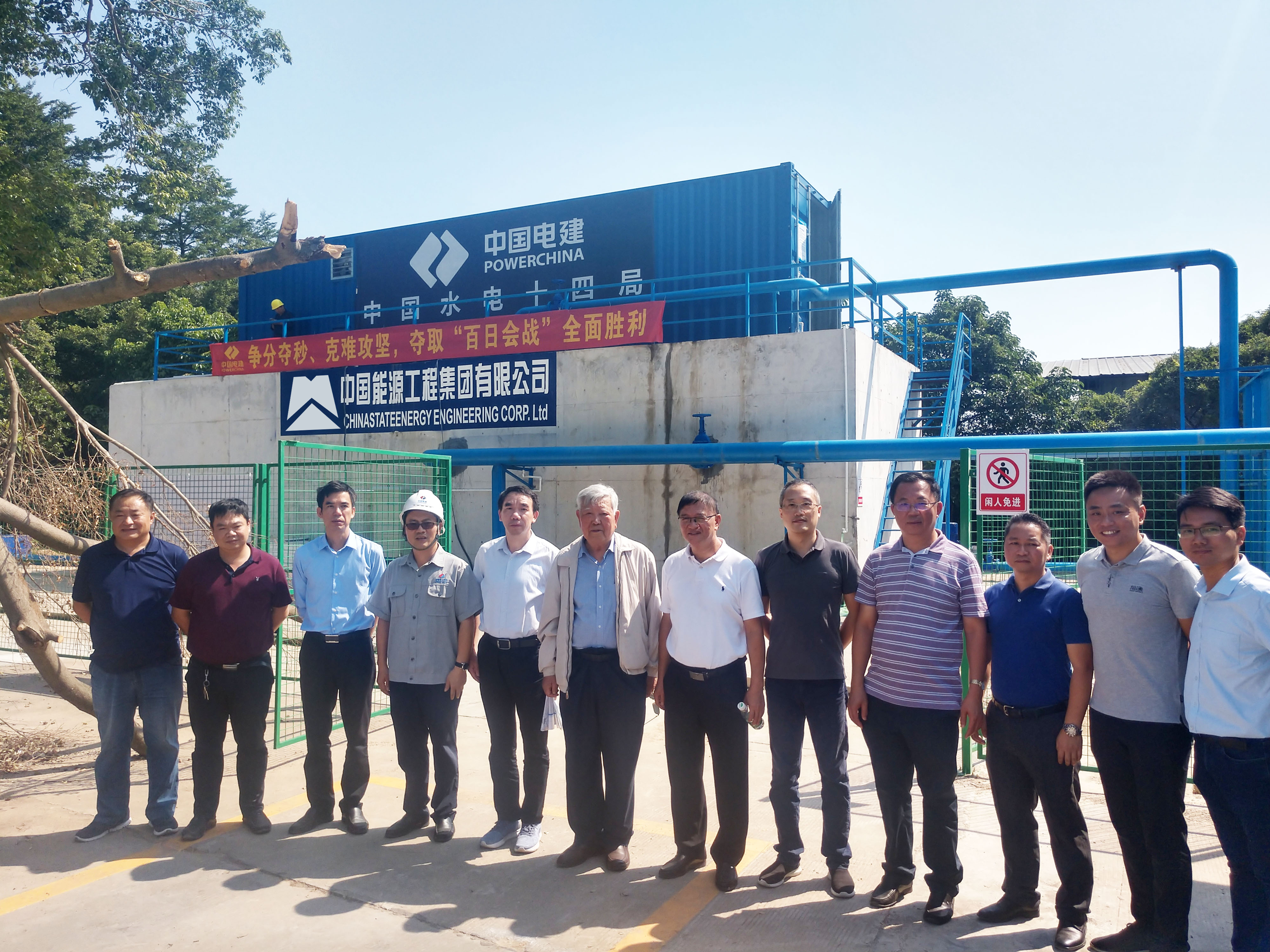 2019年10月18日上午,国家最高科技奖得主赵忠贤院士一行莅临东莞清溪镇二坑水一体化污水处理示范点参观。东莞石马河流域综合整治现场指挥部现场指挥陶谨、中国能源工程集团所属甘肃蓝科石化高新装备股份有限公司水环境事业部总工程师裘知,东莞松山湖材料实验室建设领导小组副组长兼办公室主任吕兢,中电建十四局东莞石马河流域综合治理项目经理部总经理郑先灿,中科院理化所低温材料及应用超导研究中心主任李来风等陪同参观。