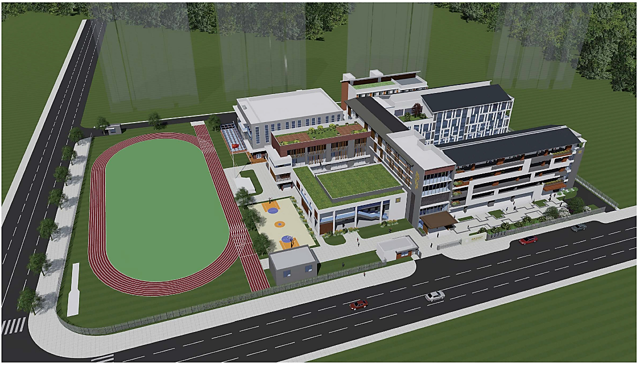 项目用地面积21535平方米,容积率0.89,总建筑面积2.3万平方米,其中地上总建筑面积1.8万平方米,地下总建筑面积0.5万平方米。项目规划布局采用庭院式与半开放式组合,建筑物包括教学楼、办公楼、食堂、室内体育馆、实验楼、宿舍楼等,各建筑物通过文化连廊组成一个综合体。