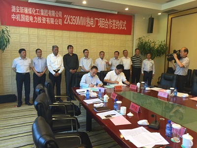 2015年6月9日,中机国能电力投资有限公司董事长刘斌与潞安新疆煤化工(集团)有限公司董事长崔树江在新疆哈密市哈密宾馆正式签署了2×350MW热电项目投资协议,新疆哈密地委副书记、行署专员芒力克.斯依提出席签约仪式并讲话。芒力克.斯依提专员对该项目寄予很深的厚望,同时提出哈密市地委、行署将竭尽全力为中机国能电力投资有限公司在新疆的发展提供优质高效服务,同时希望项目在协议签署后能够抓紧时间开工建设,尽快投产发挥经济和社会效益,刘斌董事长也提出在该项目上要创新、创优、机组的建设周期名列同类机组前茅。