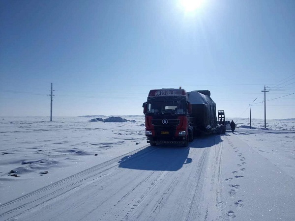 临近春节,甘肃酒泉地区下起了入冬以来的又一场大雪,玉门鑫能光热项目现场一片冰天雪地。在白雪茫茫的戈壁滩上,玉门项目部和施工单位仍然有一批人为了完成年前大件卸车,苦战严寒,坚守在施工现场。