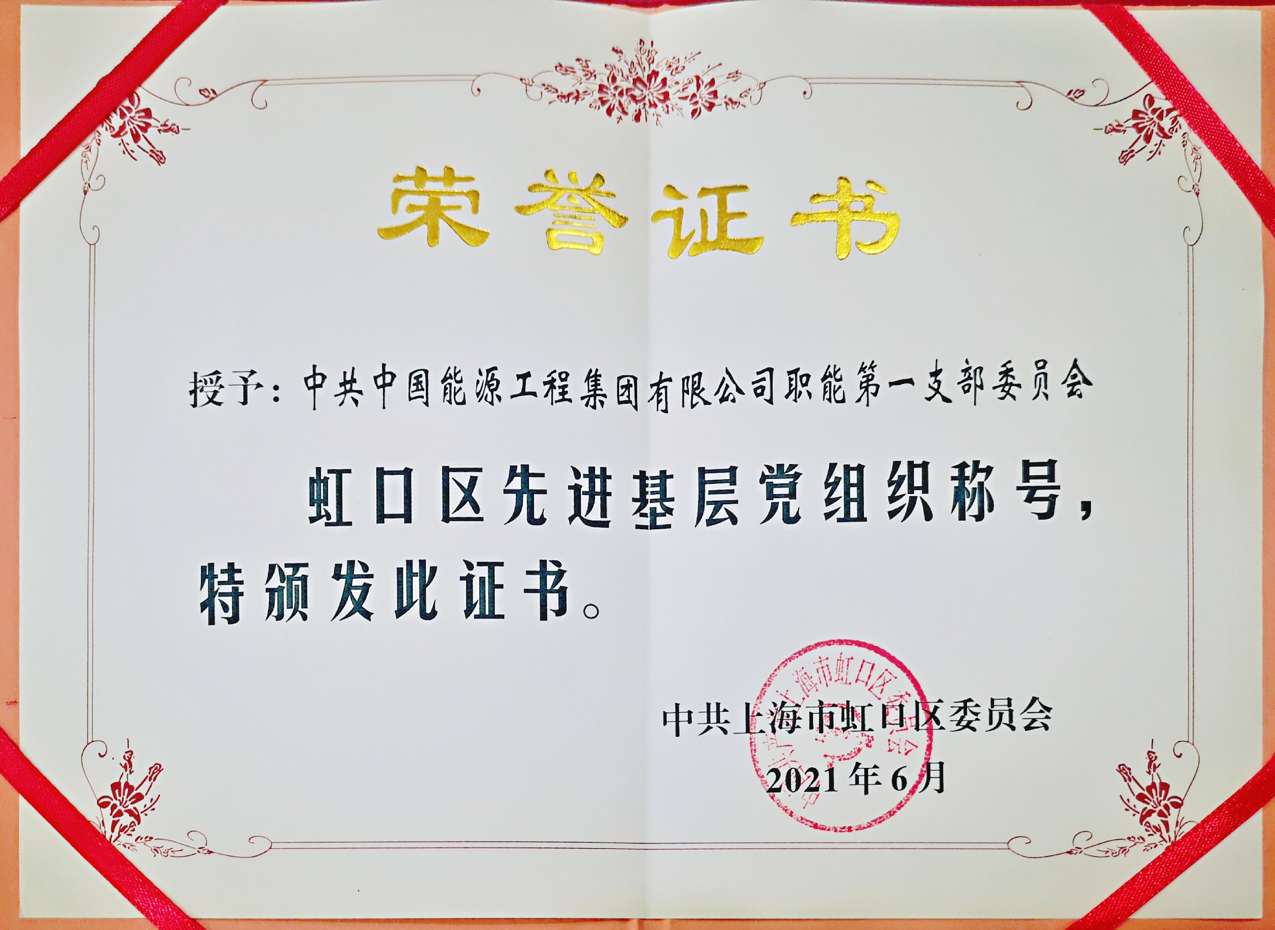 百年征程波澜壮阔,百年大党风华正茂。在奋进新时代征程中,中国能源工程集团各条战线、各个领域涌现出一大批先进典型,充分发挥了先锋模范作用。近日,中国能源工程集团有限公司职能第一党支部荣获“虹口区先进基层党组织”荣誉称号。