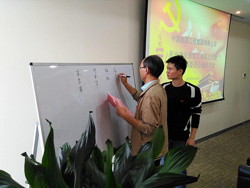 基地建设部共有9名党员,随着业务领域不断扩大,部门凝聚了一支老、中、青三代优秀的党员梯队。为了使部门党组织更加完善,激发党员在工作中的先锋模范作用,基地建设部于今年6月向中国能源工程集团系统党委提出成立党支部的申请,随后召开党员大会确定支委候选人,并于10月20日选举产生第一届支部委员会。