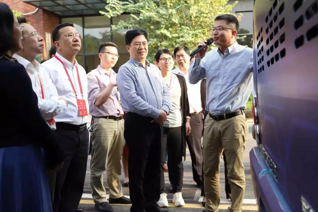 邓永明一行首先参观了中氢科技茂名氢燃料电池电堆产品展示中心,了解了正在建设的氢燃料电池技术示范生产基地的相关情况。在引导下,代表们观摩了搭载着由中氢科技自主研发的60kW氢燃料电池发动机系统的12米奇瑞氢燃料电池城市客车。
