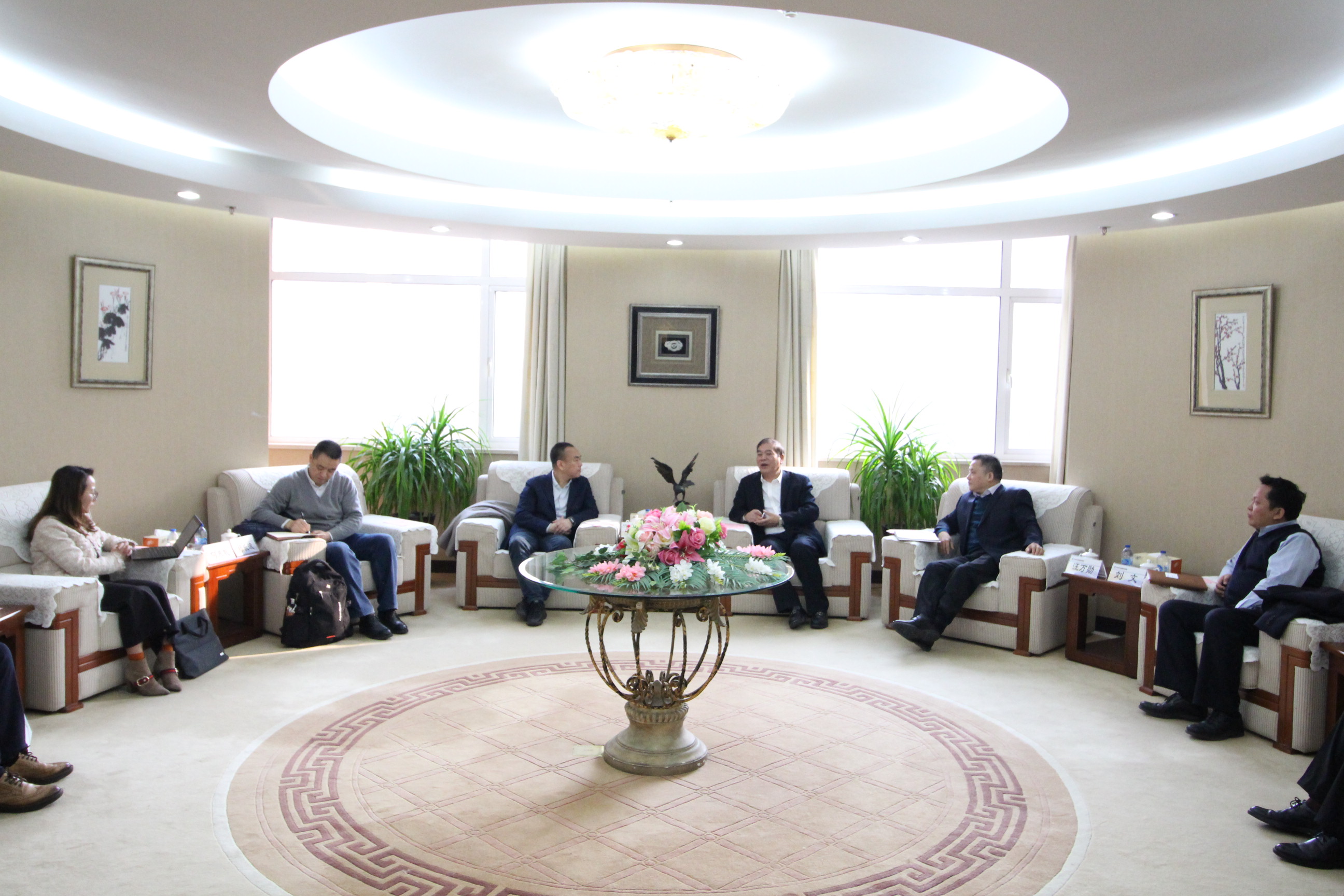 12月24日,中国能源工程集团董事长刘斌一行访问中化学交通建设集团有限公司(简称“中化学交建集团”)董事长苏中友,并就双方优势协同及在广饶县炼化产业转型升级上的潜在合作展开深入交流。