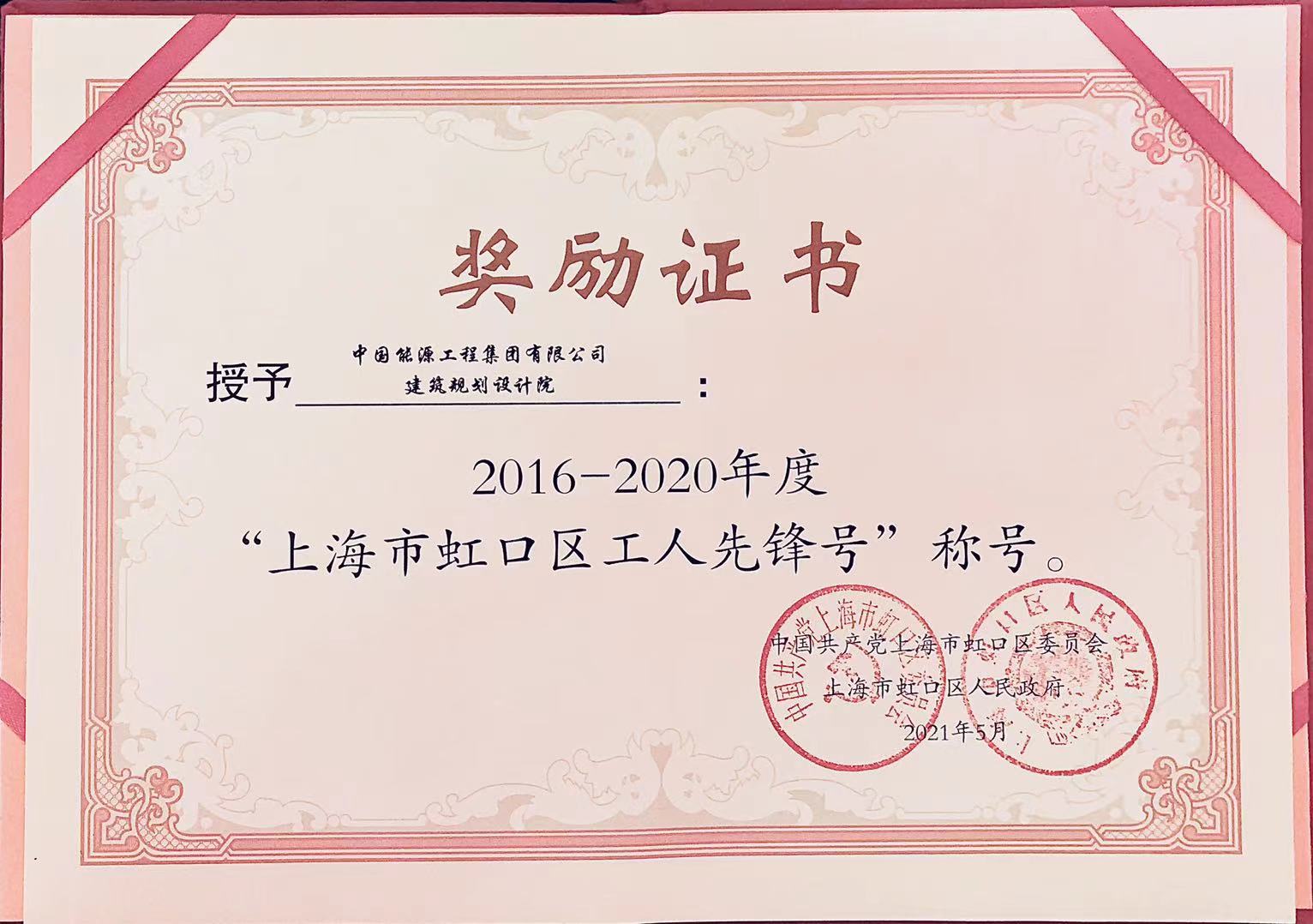 7月22日,上海市虹口区总工会召开庆祝中国共产党成立100周年“幸福都是奋斗出来的”主题活动。会上,表彰150个集体和个人,中国能源工程集团有限公司建筑规划设计院荣获2016-2020年度“上海市虹口区工人先锋号”荣誉称号。