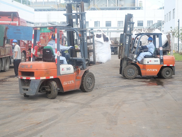 在暂存库前,现场工作人员不畏高温,一趟又一趟地来回装卸物料,叉车司机安全帽里的头发早已被汗水浸湿,但他们仍未有一丝松懈,只为保证到厂物流车辆顺利完成卸车。