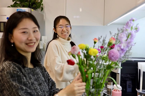 一早,公司为各岗位的女职工们准备了一份“小礼物”。彩玫、康乃馨、香槟、相思梅、郁金香,各种花材供各位女神选择与搭配,在送出祝福的同时让大家把盎然的春意带回家。