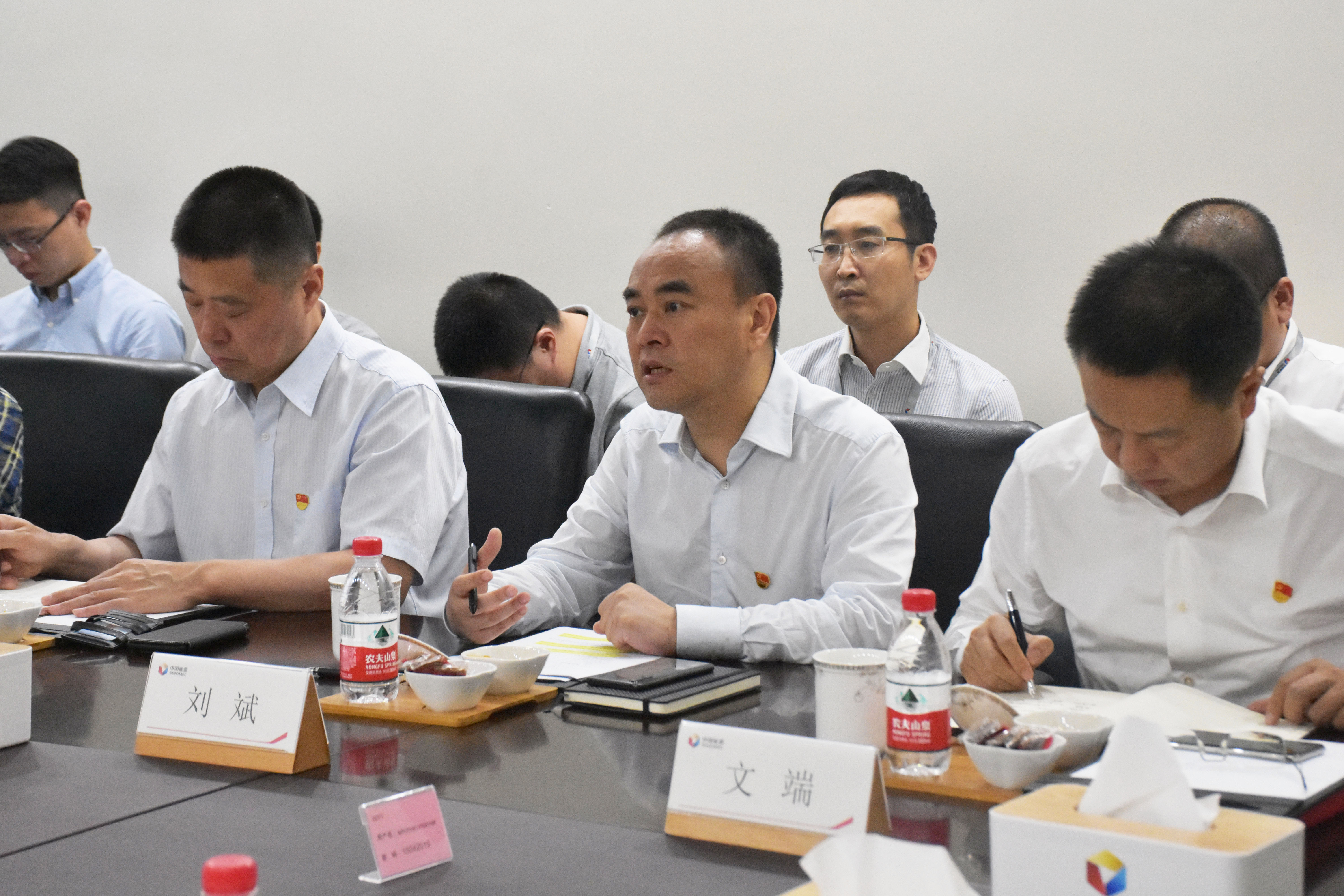 他还认真听取了党员群众关于资源共享、业务发展、风险管理、品牌一体化宣传、成员企业横向沟通等方面的意见和建议。