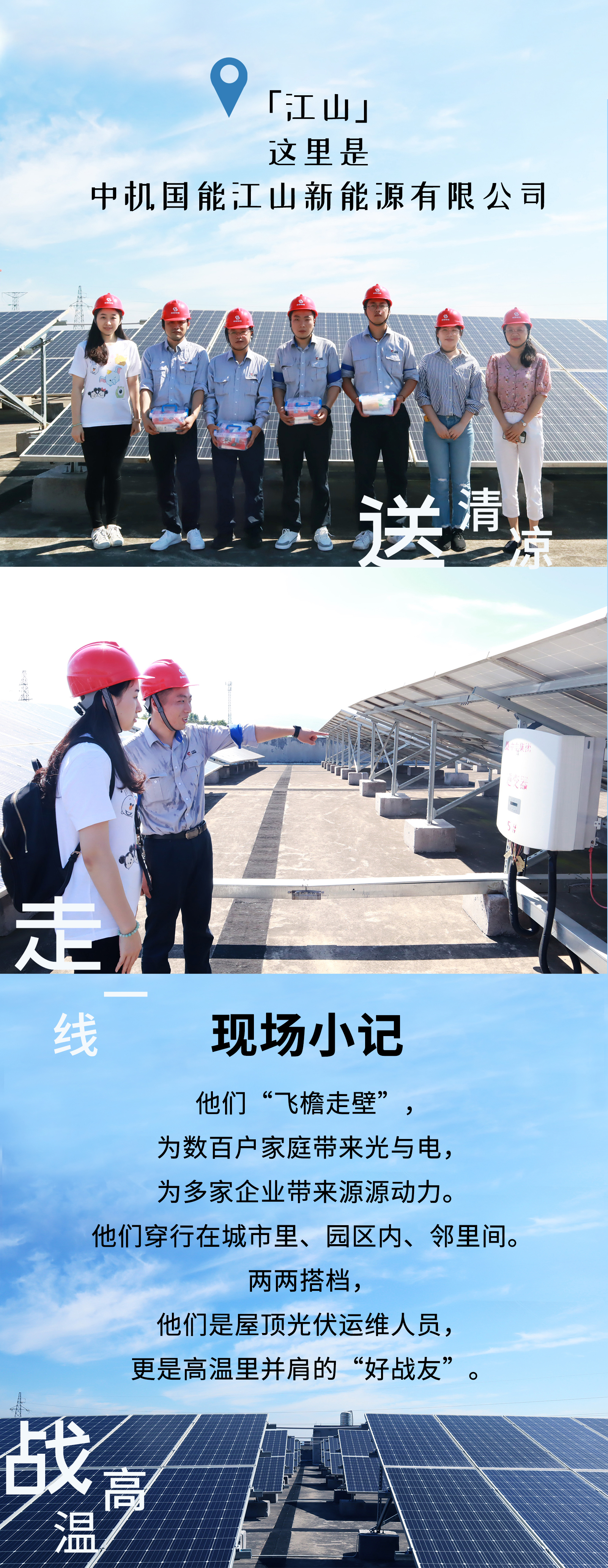 中国能源工程集团工会组织相关人员及中电集团相关人员赴中机国能江山新能源有限公司(简称“江山新能源”)慰问一线员工,考察项目情况,发放防暑物资。
