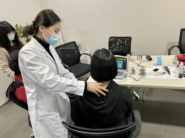 医师为报名参加活动的员工进行了搭脉、面诊、询问病史,并针对颈椎供血不足、寒湿性关节炎等常见劳损问题提供了专业推拿、拔罐、艾灸、远红外热敷等专业调理,同时还在现场示范了一些易于掌握的穴位按摩和推拿手法,科普正确的疾病自我预防方案。